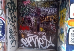 - The artwork can sometimes incorporate stencils and/or collages that can deteriorate quickly. It’s not the preferred medium, but if it’s used it should be monitored and removed once it deteriorates